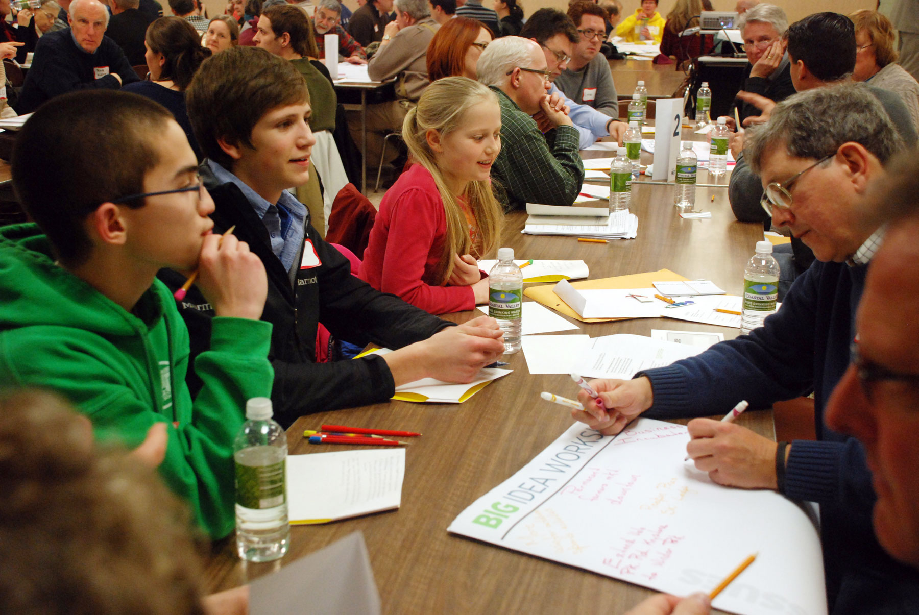 As pleased as these participants were, we were excited and encouraged by the number of kids who came and got involved. About a dozen children, some as young as nine, sat with groups of adults and shared their ideas for the city’s future. They were accompanied at tables by their mothers (and a few infant siblings). Often, it’s these young families that are the hardest to attract to public workshops.